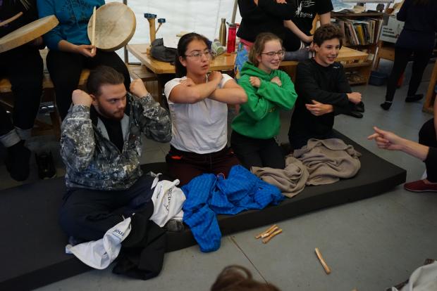 Four days were spent learning on the land with Tłı̨chǫ elders and scientists. This included topics such as human history, hand games, beading, plants, geoscience, aquatics, caribou and more.