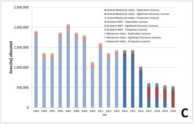 Ref. 4. CIRNAC. 2021. Oil and Gas Development NWT Annual Reports, Northern Oil and Gas Directorate of the Department of Indian Affairs and Northern Development.